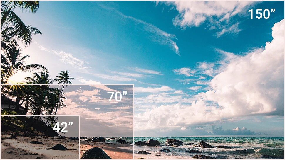 Easily adjust screen size to anywhere between 80-150 inches. Experience the immersive pleasure of watching a movie, listening to a concert, or playing a game on a massive screen.